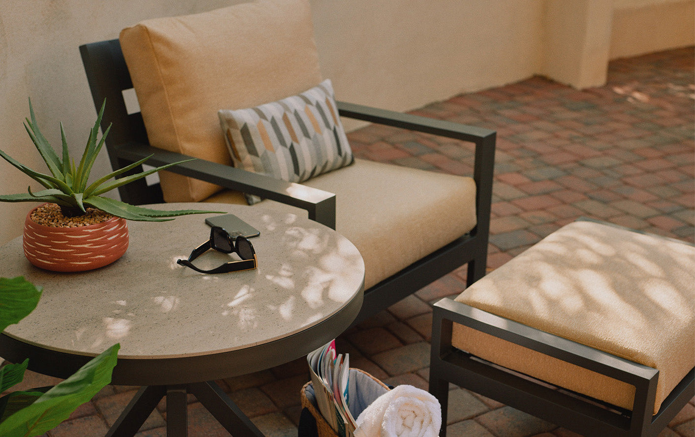 Featuring our most innovative materials for patio furniture cushions, tables, and frames.