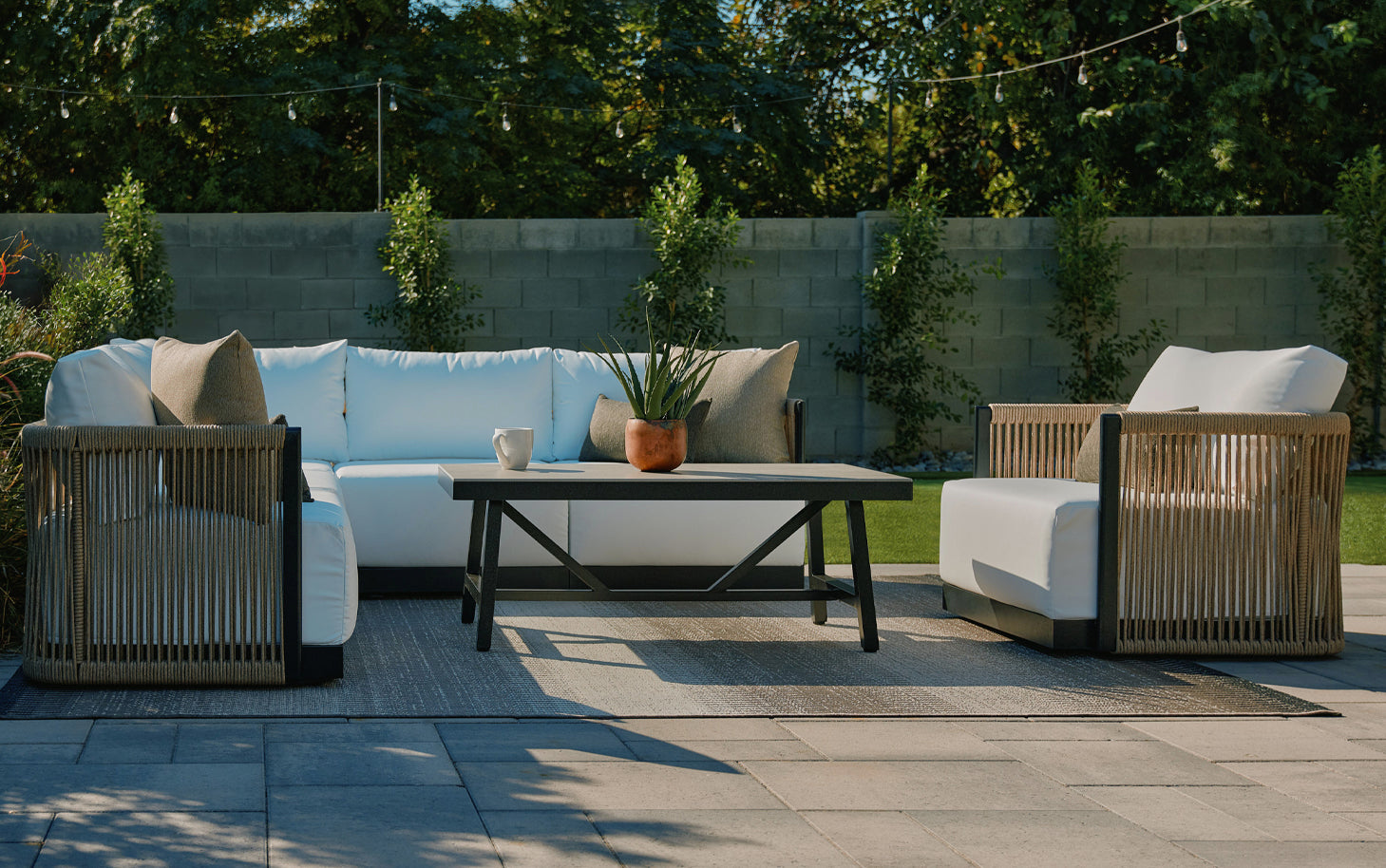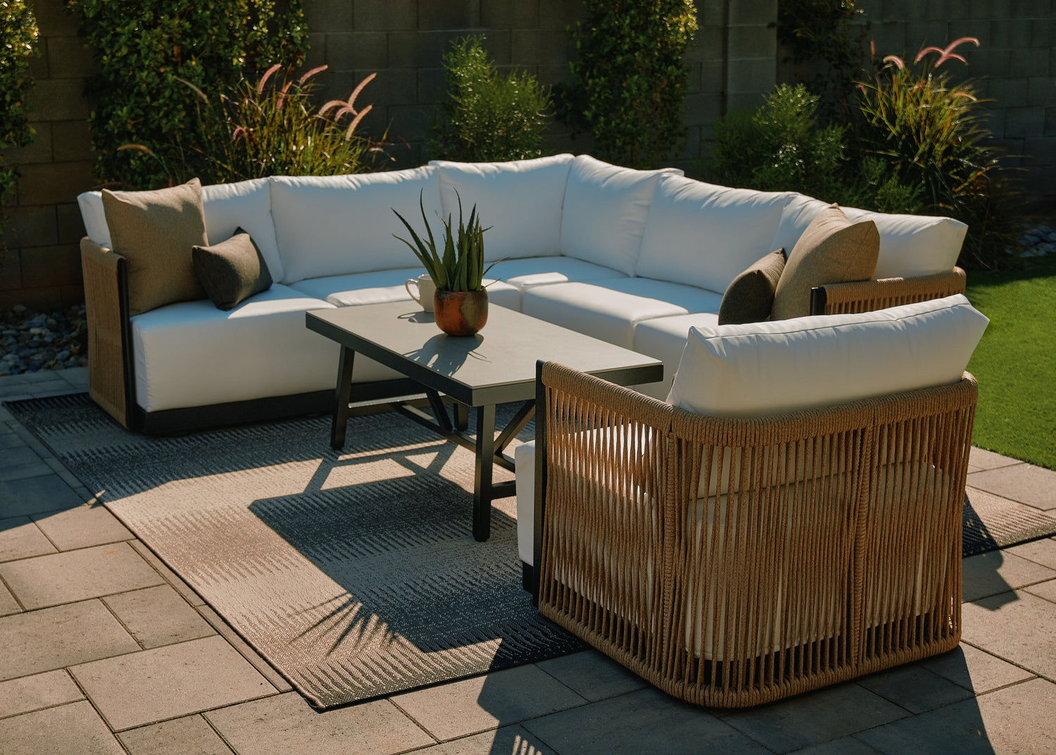 Step into a backyard where everyday moments feel like a getaway. The Villa and Resort collections transport you to a vacation state of mind with their luxurious comfort and thoughtfully crafted designs featuring contemporary detailing made from durable, solution-dyed rope.