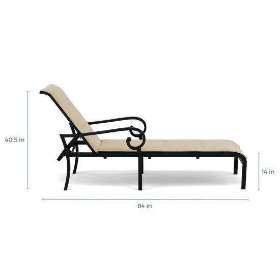 Our famous Bliss padded slings are available in various fabrics designed to repel water and stains while resisting fading and mildew, ensuring long-lasting durability.