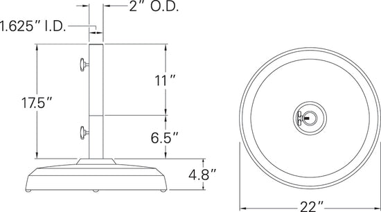 - Base diameter of 22".