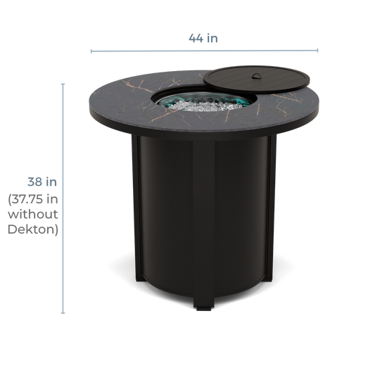 Crafted with high-quality materials, the 44" Round Balcony Fire Table is designed to enhance the ambiance of your outdoor space. Bliss Fire Tables are built using durable powder-coated aluminum bases and tops that will not rust and will hold up to the weather. You’ll never worry about rust or unsightly rings on your patio or deck. For the ultimate scratch, stain, and UV-proof surface, choose one of the beautiful Bliss table top options to complement your outdoor space.