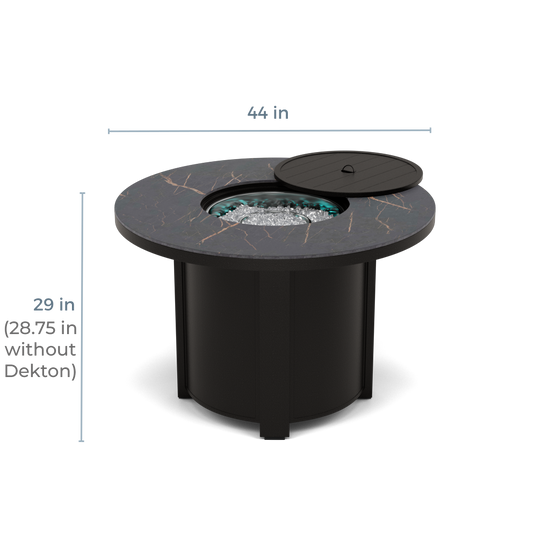 Crafted with high-quality materials, the 44" Round Dining Fire Table is designed to enhance the ambiance of your outdoor space. Bliss Fire Tables are built using durable powder-coated aluminum bases and tops that will not rust and will hold up to the weather. You’ll never worry about rust or unsightly rings on your patio or deck. For the ultimate scratch, stain, and UV-proof surface, choose one of the beautiful Bliss table top options to complement your outdoor space.