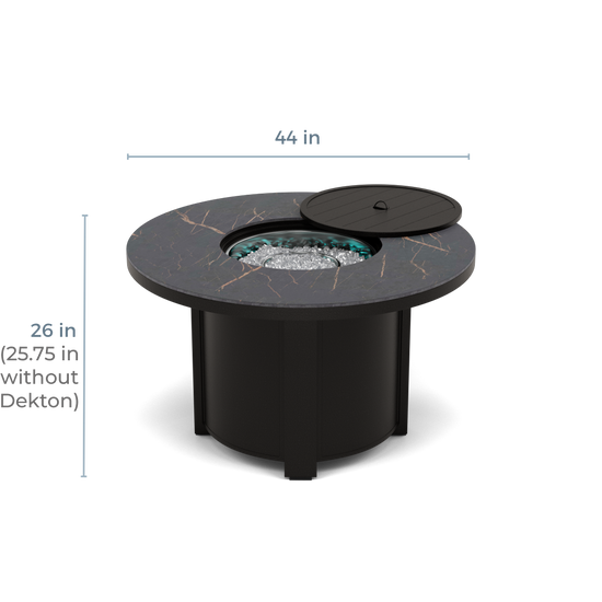 Crafted with high-quality materials, the 44" Round Chat Fire Table is designed to enhance the ambiance of your outdoor space. Bliss Fire Tables are built using durable powder-coated aluminum bases and tops that will not rust and will hold up to the weather. You’ll never worry about rust or unsightly rings on your patio or deck. For the ultimate scratch, stain, and UV-proof surface, choose one of the beautiful Bliss table top options to complement your outdoor space.