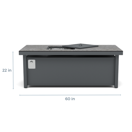 Crafted with high-quality materials, the 60" x 30" rectangular fire table is designed to enhance the ambiance of your outdoor space. Bliss Fire Tables are built using durable powder-coated aluminum bases and tops that will not rust and will hold up to the weather. You’ll never worry about rust or unsightly rings on your patio or deck. For the ultimate scratch, stain, and UV-proof surface, choose one of the beautiful Bliss table top options to complement your outdoor space.
