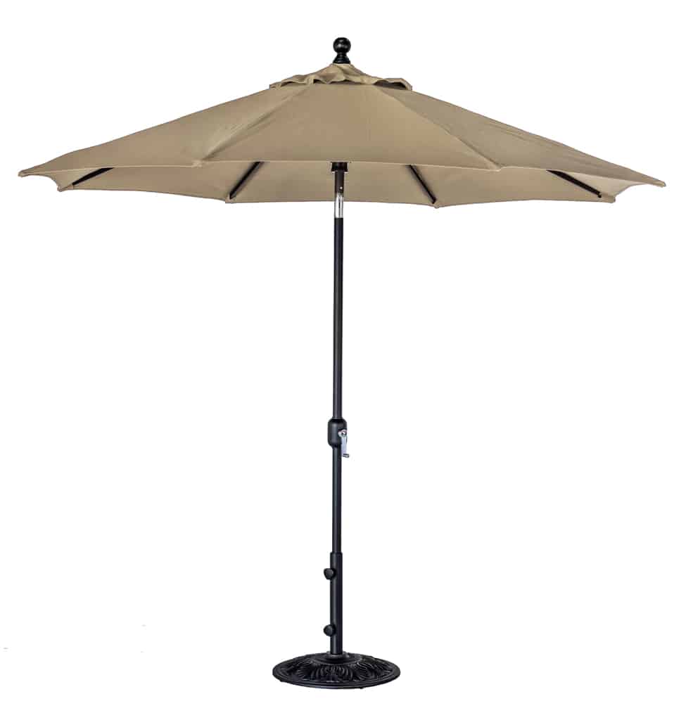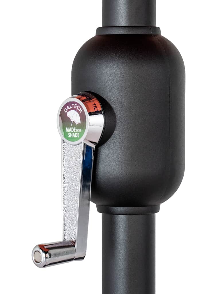 The 9’ Galtech Deluxe Auto Tilt umbrella offers the perfect blend of elegance and functionality. Simply turn the crank clockwise to effortlessly engage the tilt feature. Topped with a Sunbrella ® fabric canopy, this umbrella provides unparalleled protection from the elements.