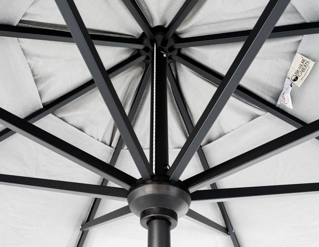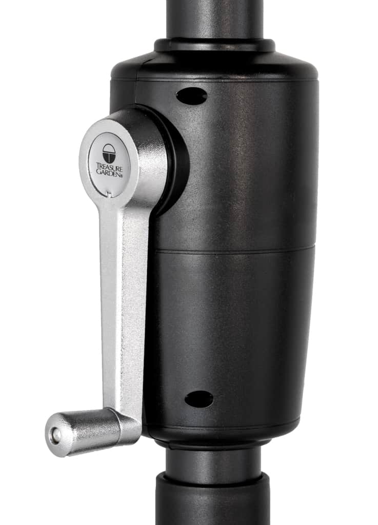 The 9’ Treasure Garden Push Button Tilt Outdoor Umbrella is vented to let in a cooling breeze while still protecting you from the harsh rays of the sun. The simple push button tilt feature makes shading your outdoor patio or entertaining area quick and easy. Simply crank handle clockwise to its fully open position and push in the large silver button to manually tilt to your desired angle.