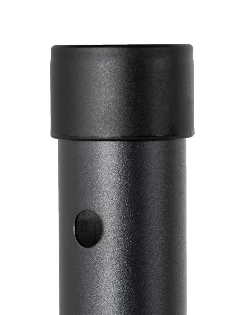 - Frame is composed of lightweight highly durable powder-coated aluminum with a black finish.