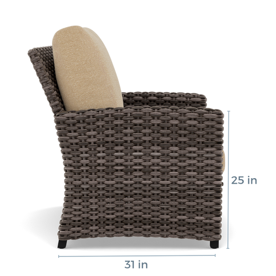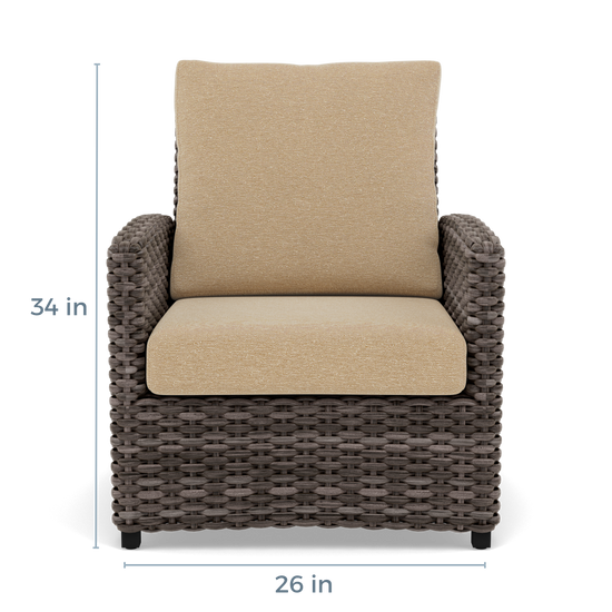 The Malibu Club Chair offers a refined place to pause, with structured wicker and soft cushions that bring ease to any corner of your patio.