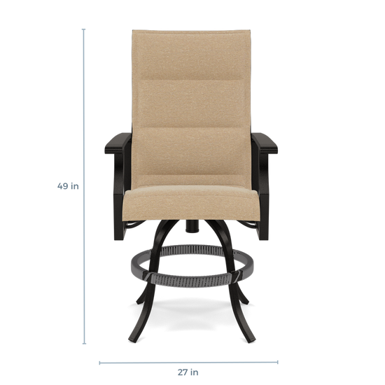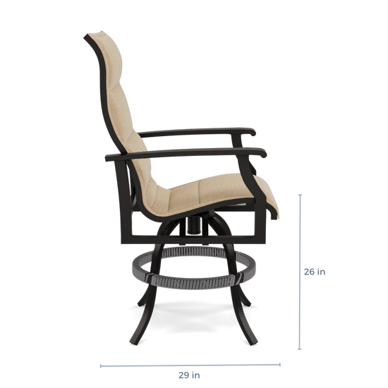 - Low-Back: Our low-back option is designed for a minimalistic look, standing 7.25" shorter than our high back padded sling. It ensures an unobstructed view, perfect for spaces where you want to maintain openness and enjoy an unobstructed view.