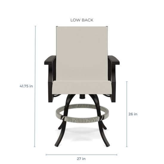 - Low-Back: Our low-back option is designed for a minimalistic look, standing 7.25" shorter than our high back offering. It ensures an unobstructed view, perfect for spaces where you want to maintain openness and enjoy an unobstructed view.