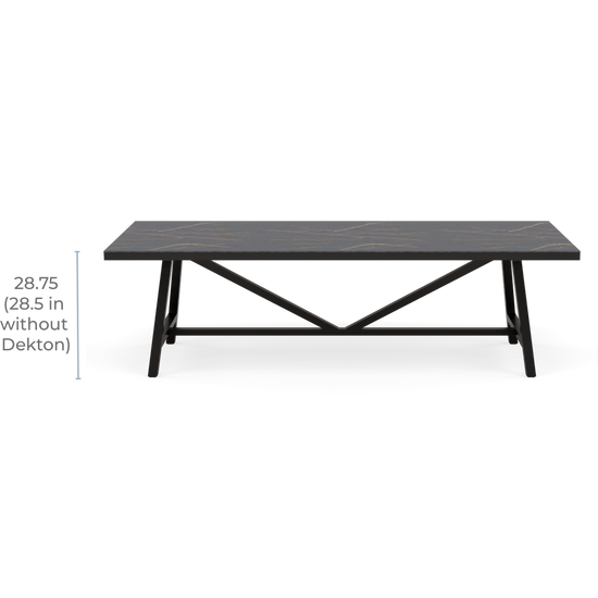 - Dining tables are 28.5″ high with the slat top, or 28.75” with a Bliss top