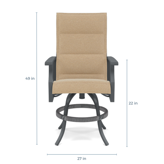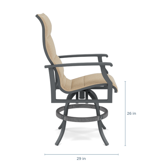 Our famous Bliss padded slings are available in various fabrics designed to repel water and stains while resisting fading and mildew, ensuring long-lasting durability.