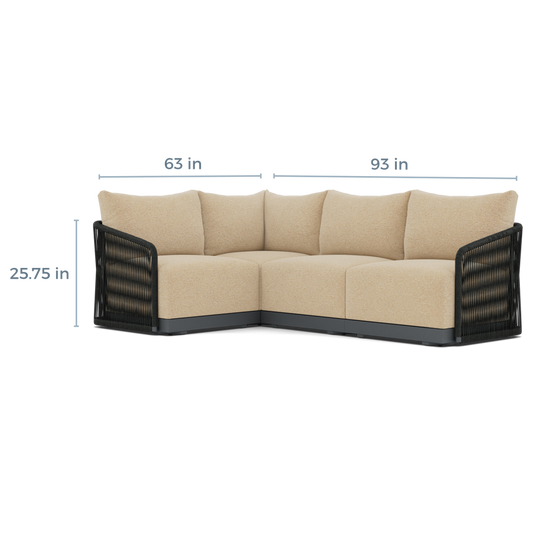The weather-resistant woven rope is wrapped around an ombre powder-coated aluminum frame, adding texture and style.