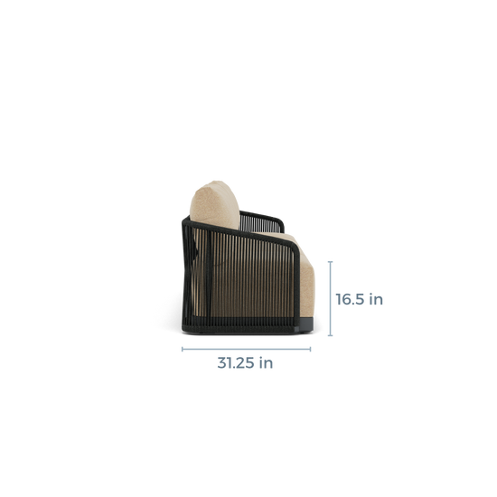 The weather-resistant woven rope is wrapped around an ombre powder-coated aluminum frame, adding texture and style.