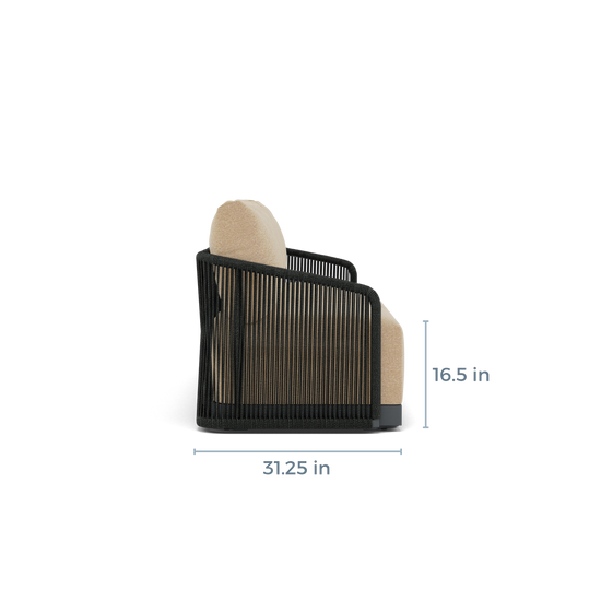 The weather-resistant woven rope is wrapped around an ombre powder-coated aluminum frame, adding texture and style.
